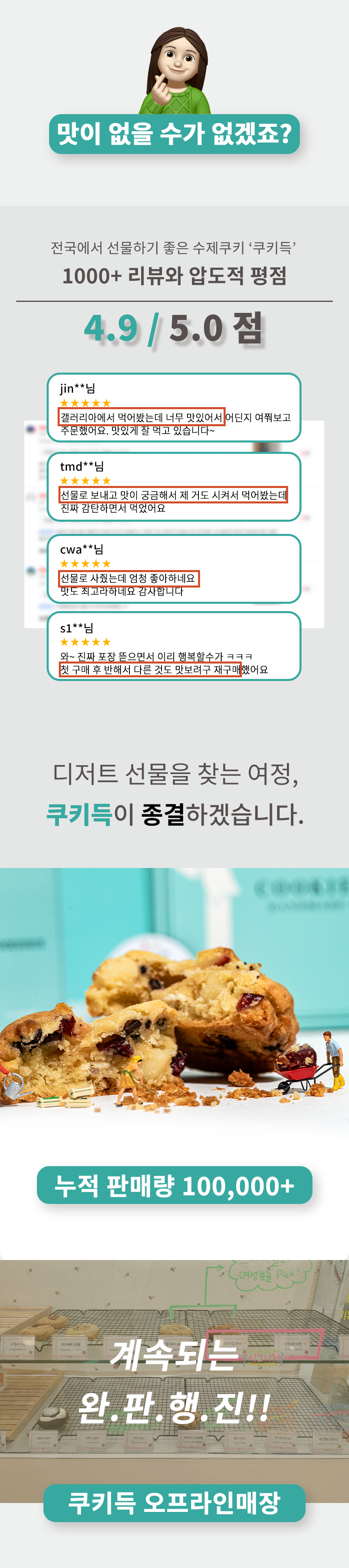 본질적인 쿠키 베이스 자체가 맛있어야 한다는 것이 쿠키득의 철학입니다.🤔
