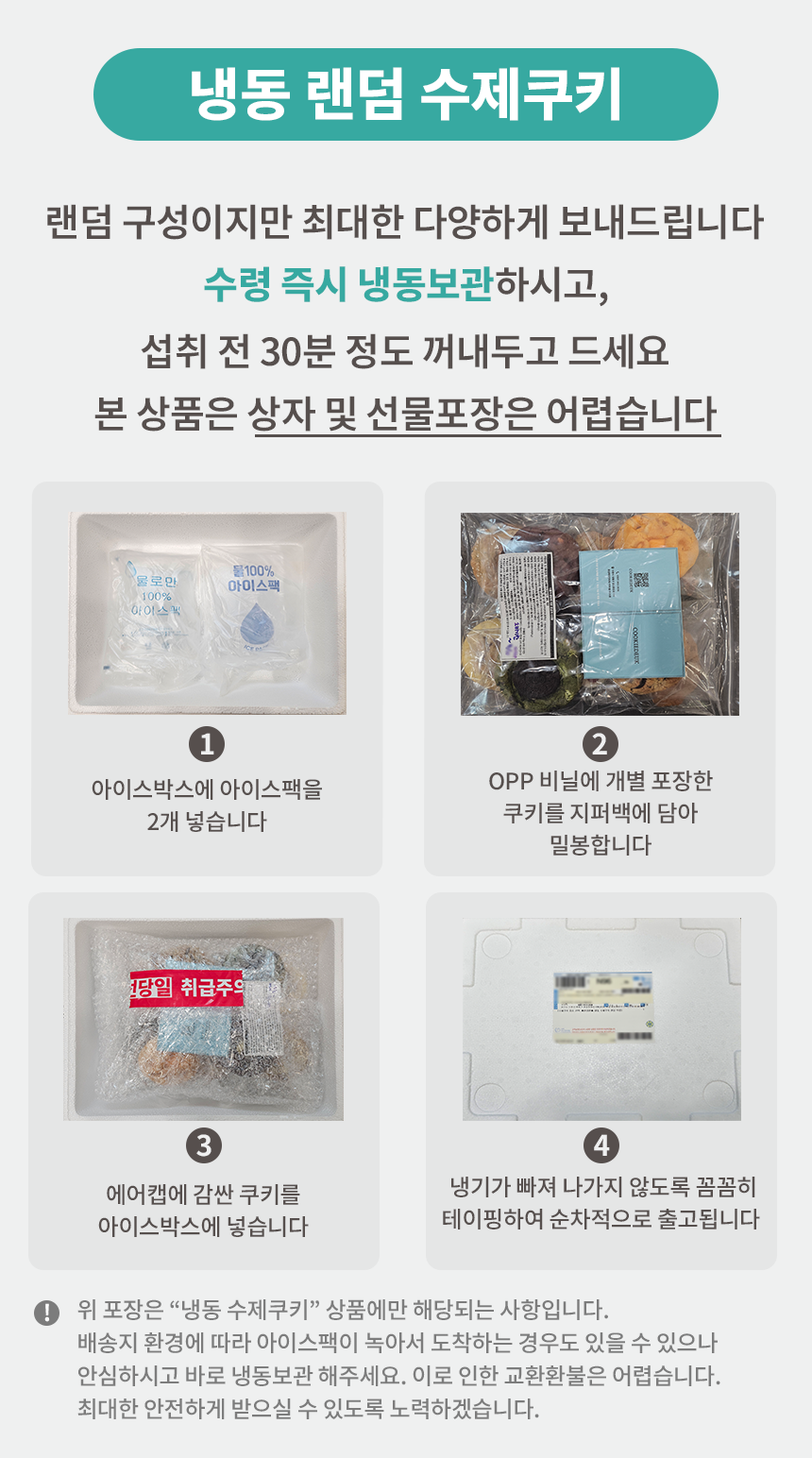 냉동 보관 시 : 4주까지 보관 가능, 20분 정도 자연 해동 후 드시면 맛있어요🍪 (기본 보관방법❄)